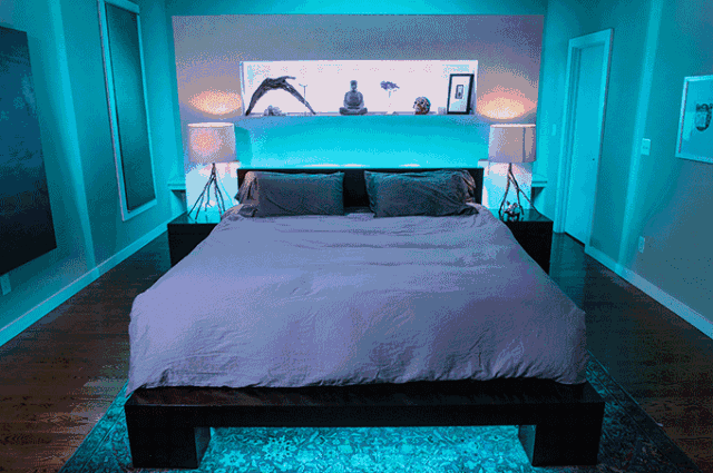 智能灯光控制系统也可实现自动感应,在进门处、过道、卫生间、卧室还有衣柜都可以设置,人来即亮人走即灭,真正做到解放双手,老人和小孩儿起夜方便,也特别适合偶尔会忘记关灯的你。除此之外,还可以根据自然光线强度调整灯光亮度。